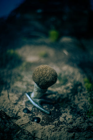 But it is the Brush; the very Leviathan among brushes, that crowns the set. Cast from a true sperm whale tooth, sculpted and hand-patinated until it gleams with ghostly luster, it bears within it a 38mm knot of pure badger or boar, vast enough to stir the envy of the gods of grooming themselves. One might call it the White Whale incarnate,a monument to man’s unending pursuit of mastery over nature, and himself.