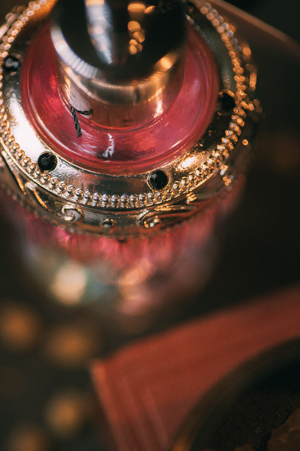 50ml Eau De Parfum in a glass bottle with a titaniam fumed quartz crystal bead and a bulb atomizer